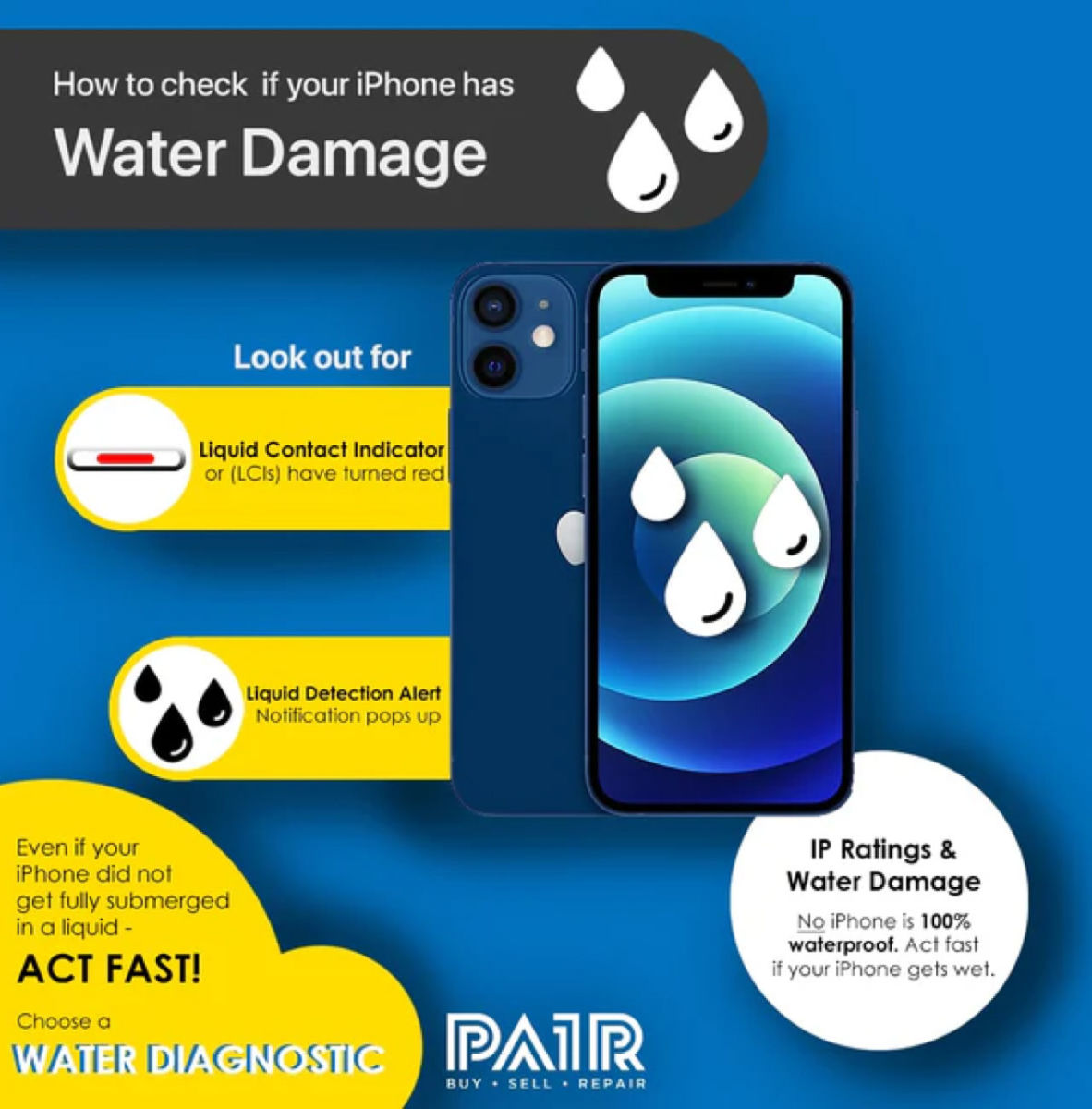 Just because your IP Rating* is labelled as ‘Watertight’ or ‘Water Resistant’ does not mean it is waterproof and does not mean it is excluded from the effects of Water Damage.